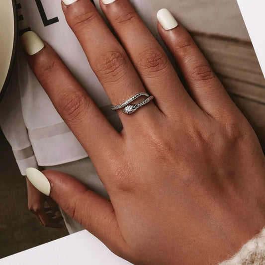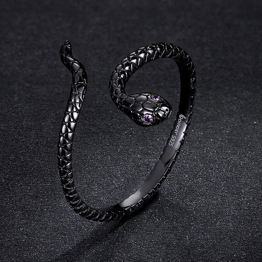 Black snake ring sterling silver adjustable