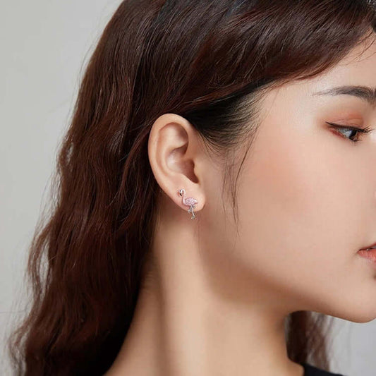 Flamingo earrings with a pink flamingo