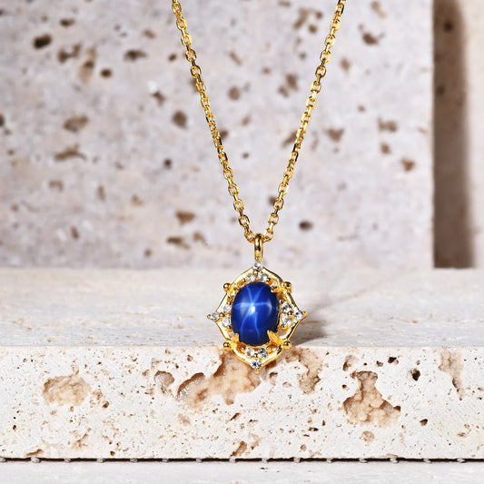 Blue star sapphire necklace in gold Art Deco momma necklace