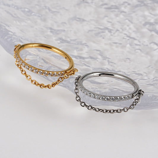 Gold helix hoop with a chain and CZ titanium 16G