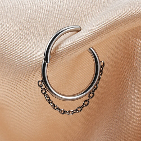 Septum ring 16 gauge with chain made of titanium