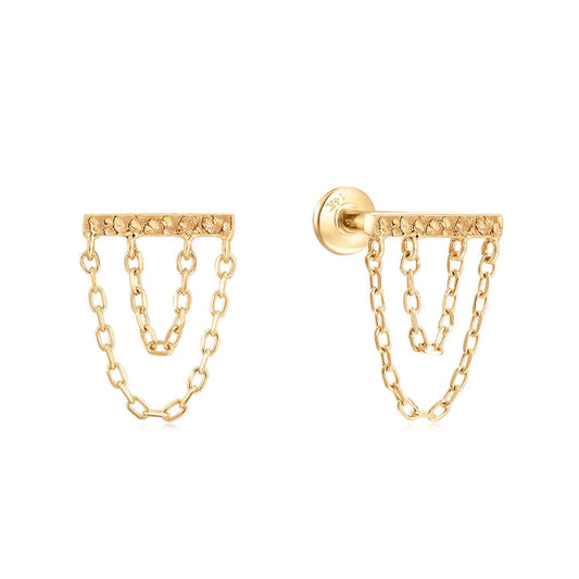 14K gold helix earring with chains conch earrings earlobe piercing jewelry labret stud