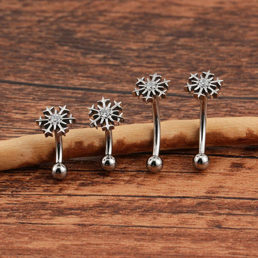 Rook piercing barbell with a snowflake curved barbell rook piercing gold silver titanium 16G