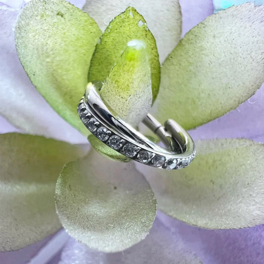 Captive bead ring conch piercing hoop gold silver rose gold titanium with CZ stones 8mm 10mm 16 gauge