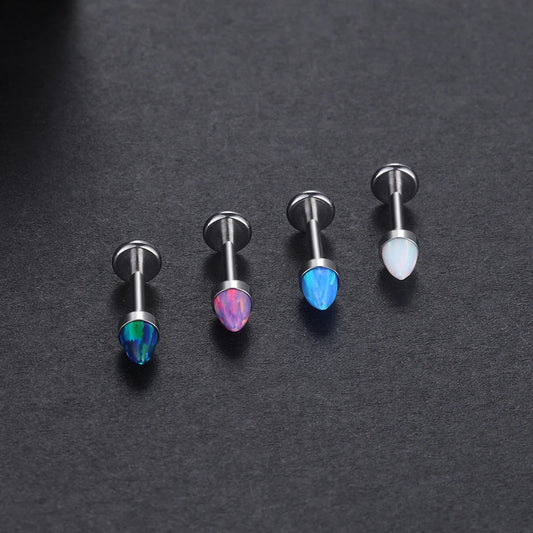 Opal nose stud flat back titanium 16G blue opal purple opal white opal earring