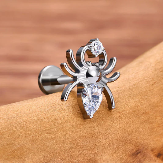 Spider nose stud with a clear pink or red diamond spider stud earring titanium piercing stud