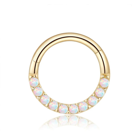 Opal nose piercing 14K gold opal hoop earring hinged segment clicker septum ring daith piercing