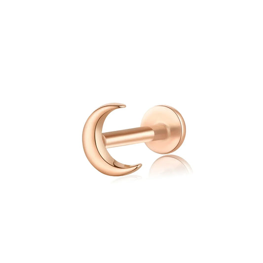 Rose gold nose stud with the moon 14K solid gold threadless ear stud lip stud