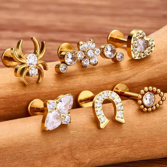 Small medusa piercing with 4 dots cute and tiny titanium lip stud nose stud ear stud 16G