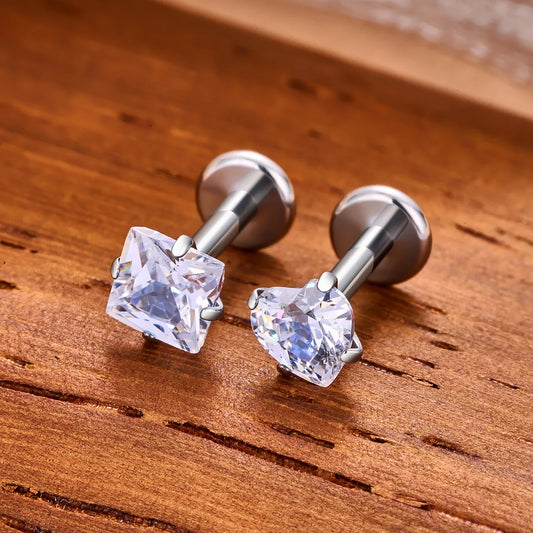 Labret Monroe piercing small and tiny heart-shaped titanium labret stud 16G 18G gold and silver