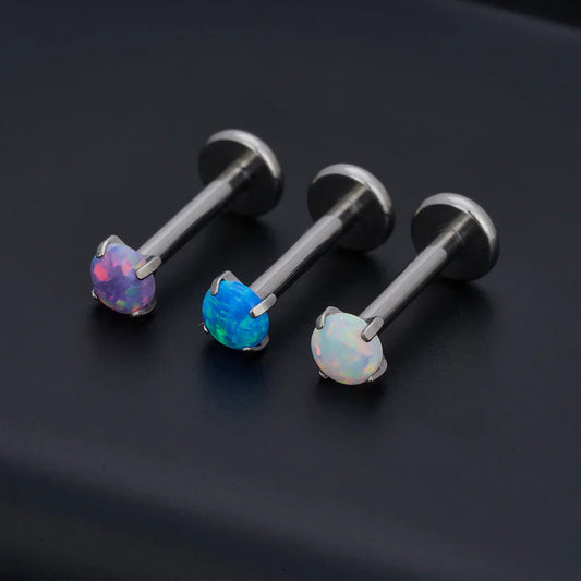 Opal medusa piercing with white blue purple opal cute and tiny titanium lip stud nose stud ear stud