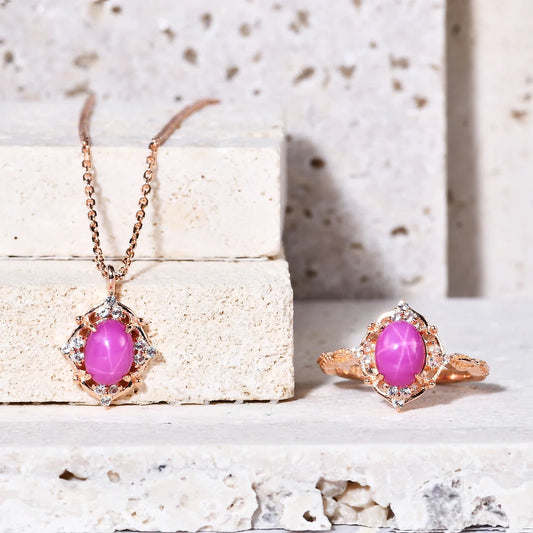 Star ruby pendant necklace red necklace rose gold chain necklace