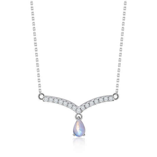 V-shape moonstone necklace curved bar necklace gift for her birthstone necklace