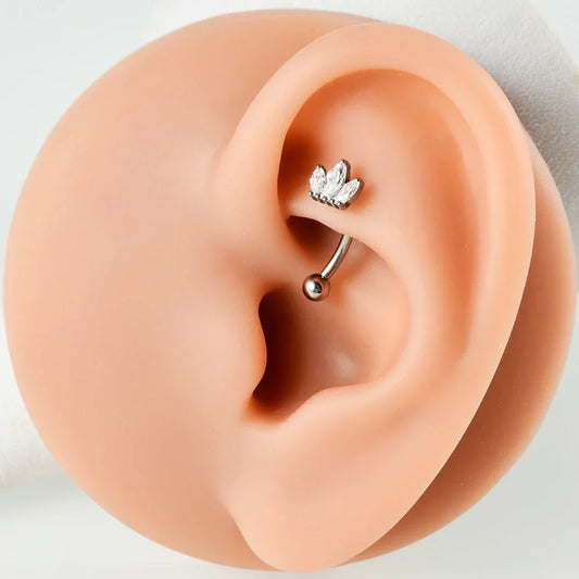 Diamond eyebrow piercing tiny and dainty titanium curved barbell banana barbell
