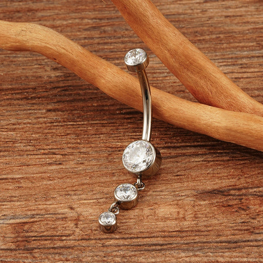 Dangle belly ring with diamond CZ cute belly button piercing titanium