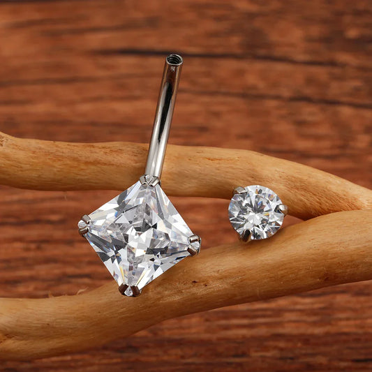 Diamond belly ring with square cubic zirconia titanium navel piercing