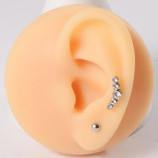 Helix piercing stud with five clear pink green diamond long cool and unique titanium upper helix earring