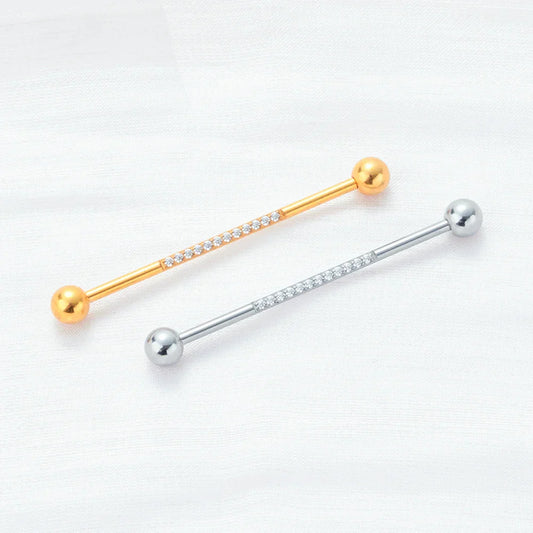 Industrial bar piercing cute with CZ stones gold and silver titanium 14G industrial barbell