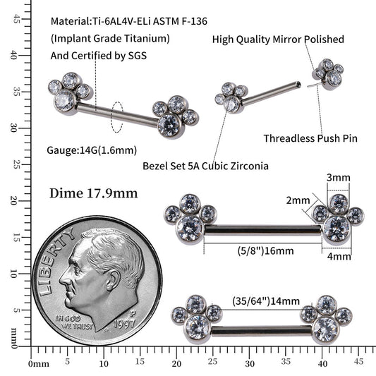 Diamond nipple ring titanium 14 gauge piercing bar 1 piece