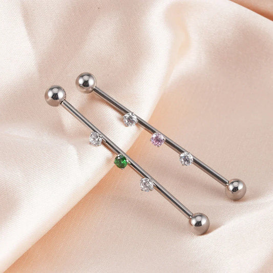 Industrial bar earring with cz 14G 38mm titanium industrial barbell piercing gold silver rose gold black