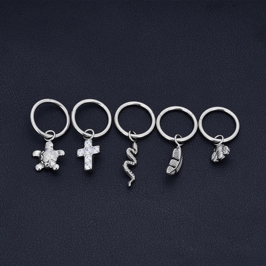 Screw nose ring with a cross titanium corkscrew nose stud silver