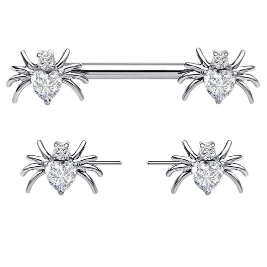 Spider nipple rings threadless titanium 14G 14mm 2 pieces straight barbell cute Halloween
