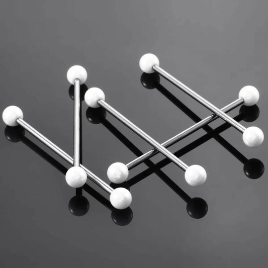 Pearl industrial piercing silver 14G 38mm pearl industrial bar titanium pearl balls externally threaded