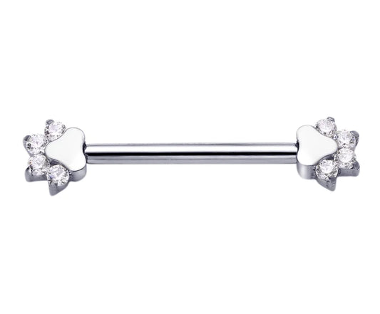 Nipple piercings with cat paws 14G 14mm gold and silver titanium 1 pair