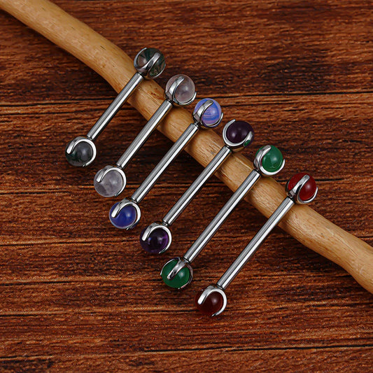 Nipple piercing barbell with natural gemstones titanium 14G internally threaded straight barbell 12mm 14mm 16mm 1 piece