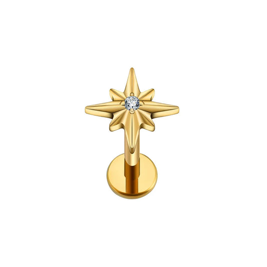 Inner conch stud with a star and a diamond flat back 16 gauge gold silver titanium