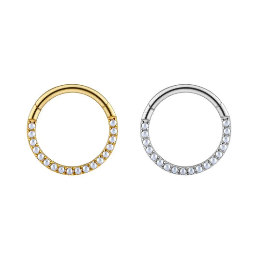 Daith pearl earring made of titanium 16G septum clicker ring