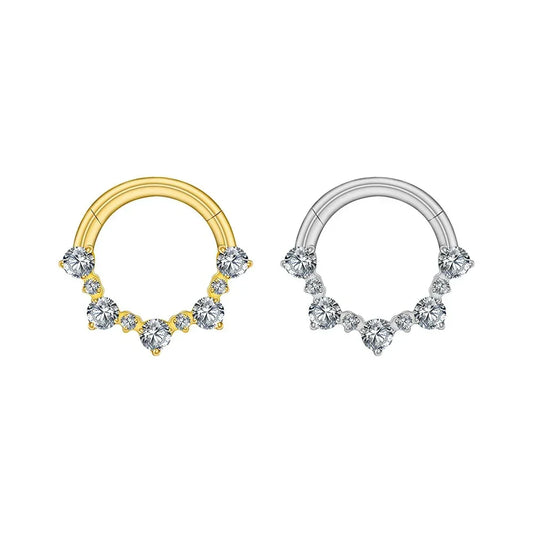 Diamond daith earring gold and silver 16G titanium with CZ stones septum clicker ring