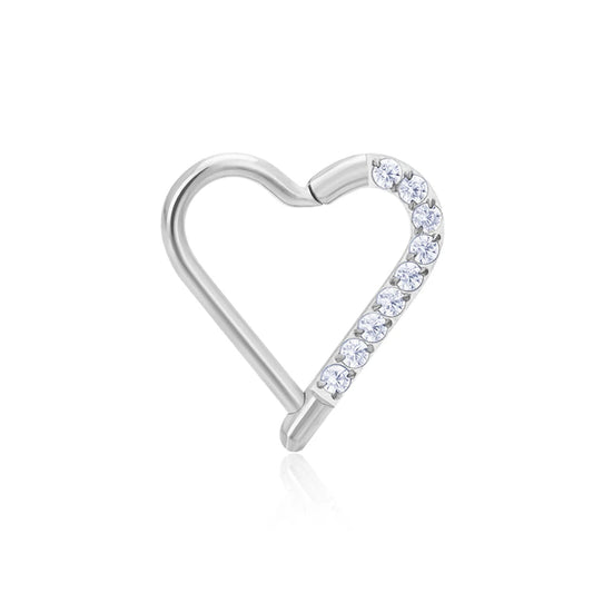 Daith heart piercing gold and silver daith ring titanium 16G with CZ stones hinged segment clicker