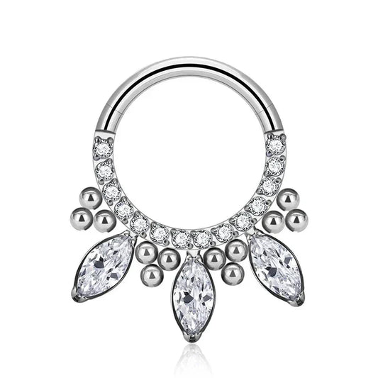 Flower septum ring 16G gold and silver titanium with CZ stones daith piercing jewelry nose rings