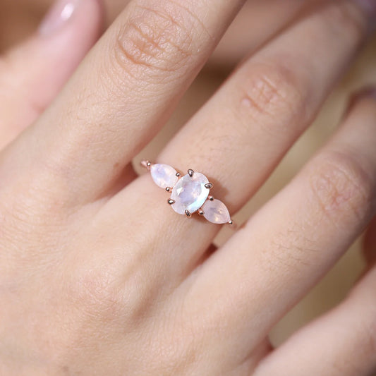 Women's moonstone ring rose gold with small round moonstones romantic ring for her