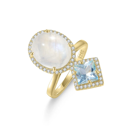 Moonstone and blue topaz ring with large gemstones crystal ring two stone ring cute ring