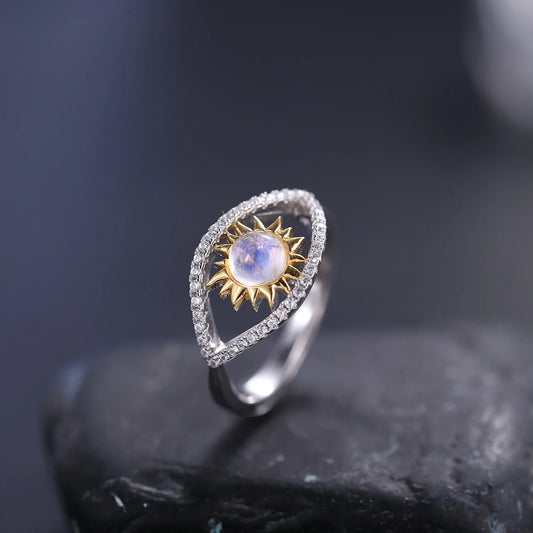 Big moonstone ring with a huge moonstone and cz cocktail ring birthstone ring