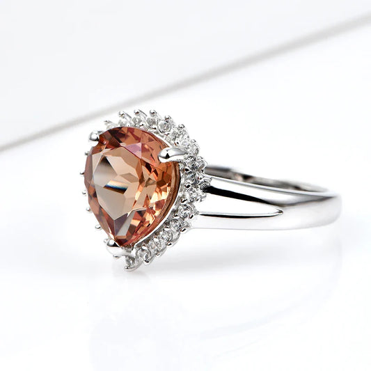 Silver zultanite ring with a pear-shaped zultanite and clear cz stones