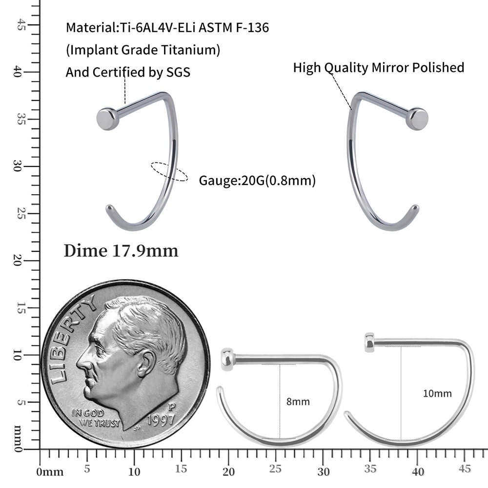 D shape nose ring 20 gauge nose ring titanium D shape nose stud 18 gauge