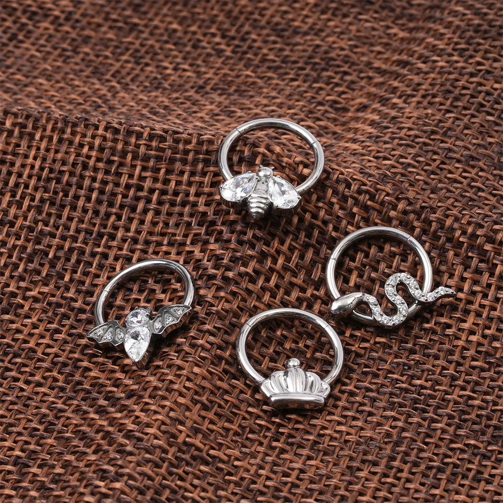 Bat septum ring 16G cool bat wings diamond segment clicker 8mm 10mm titanium