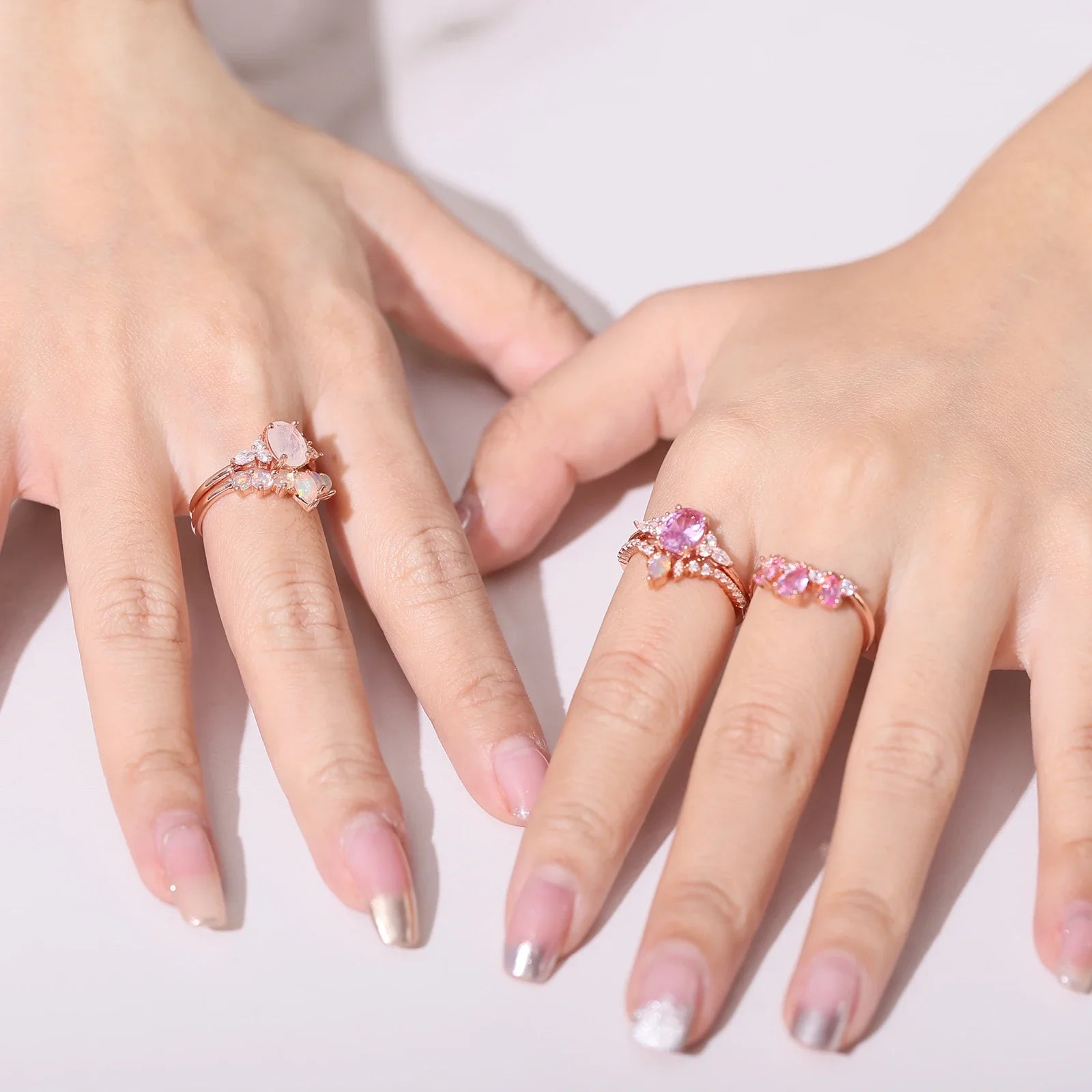 Black rutilated quartz promise ring 14K rose gold antique looking gothic engagement ring