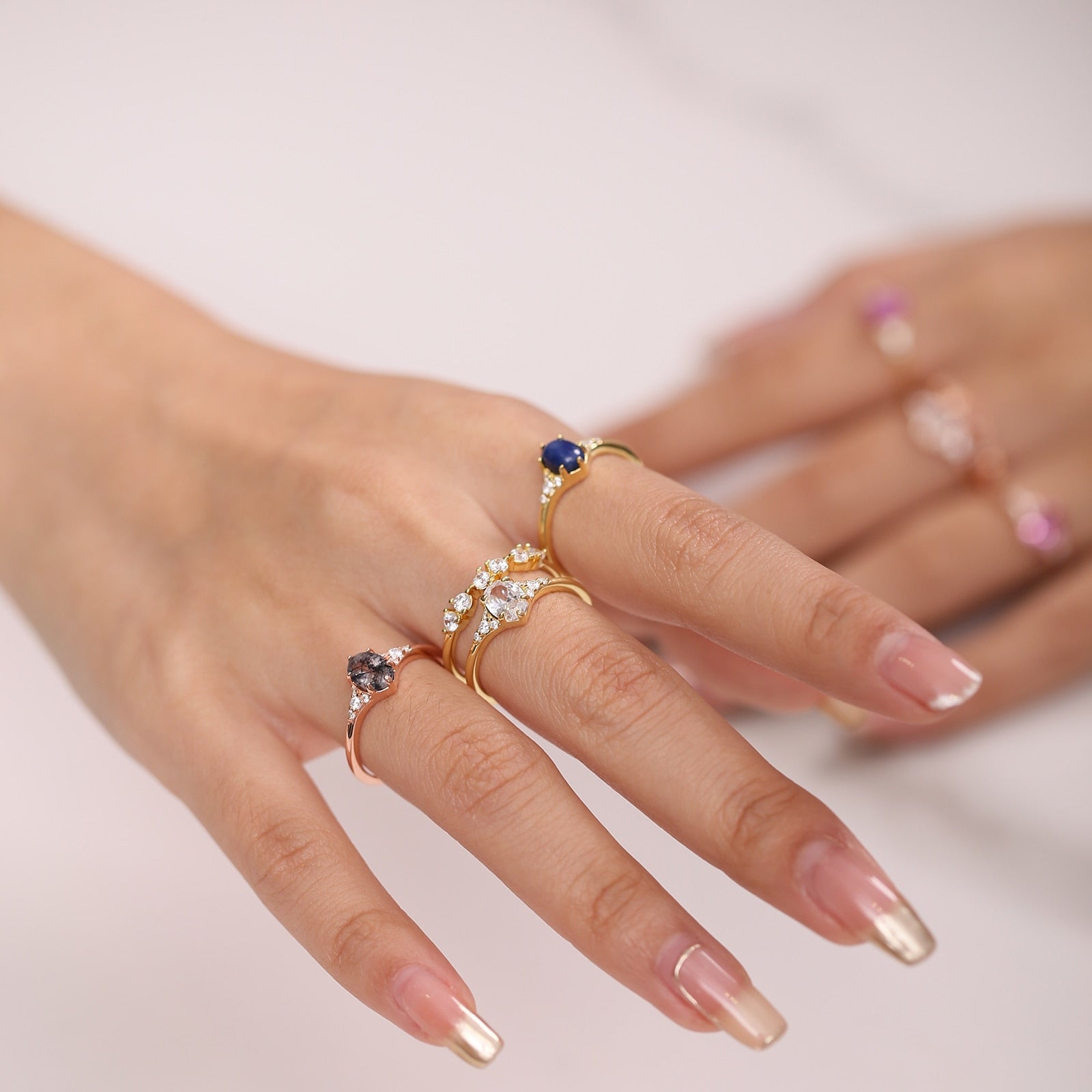 Black rutilated quartz ring oval cut natural rutilated quartz engagement ring