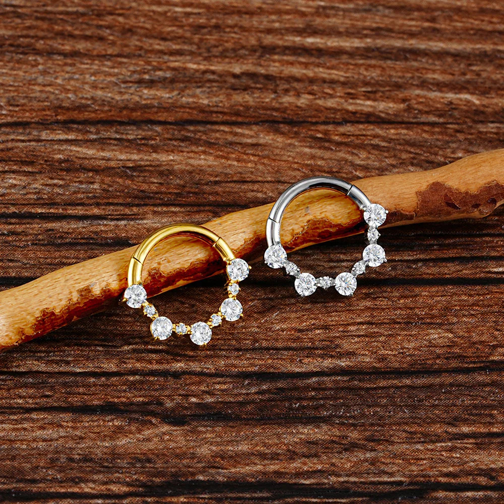 Cute daith piercing with diamond cz made of titanium gold and silver septum ring