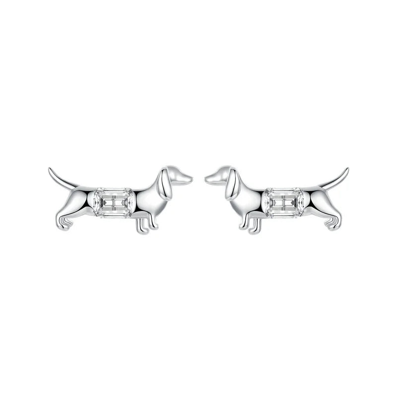 Dachshund earrings sterling silver stud earrings with clear diamond cz