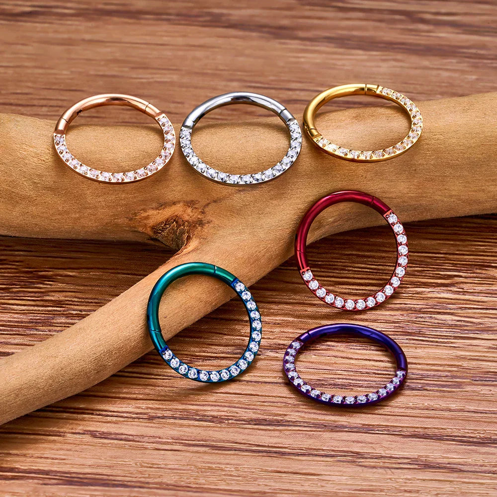 Diamond nose ring 16g titanium with CZ red green blue gold rose gold
