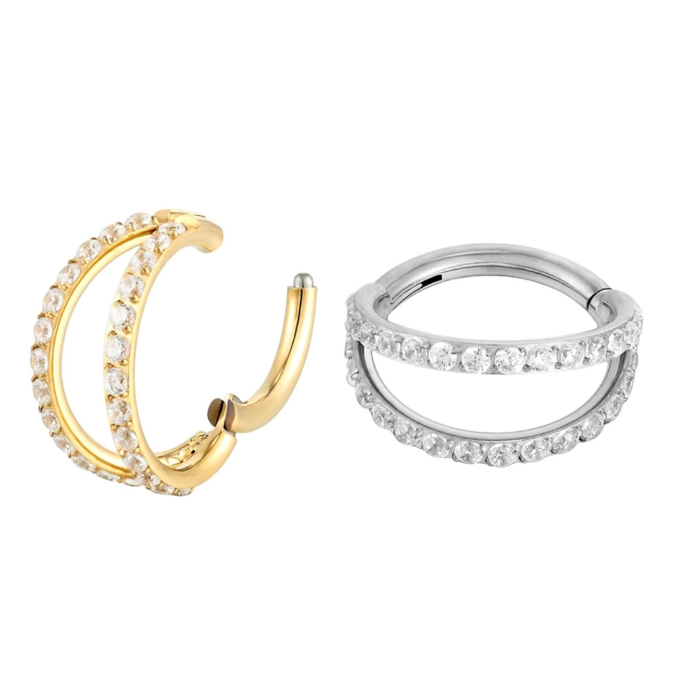 Double nose ring with CZ titanium 16G