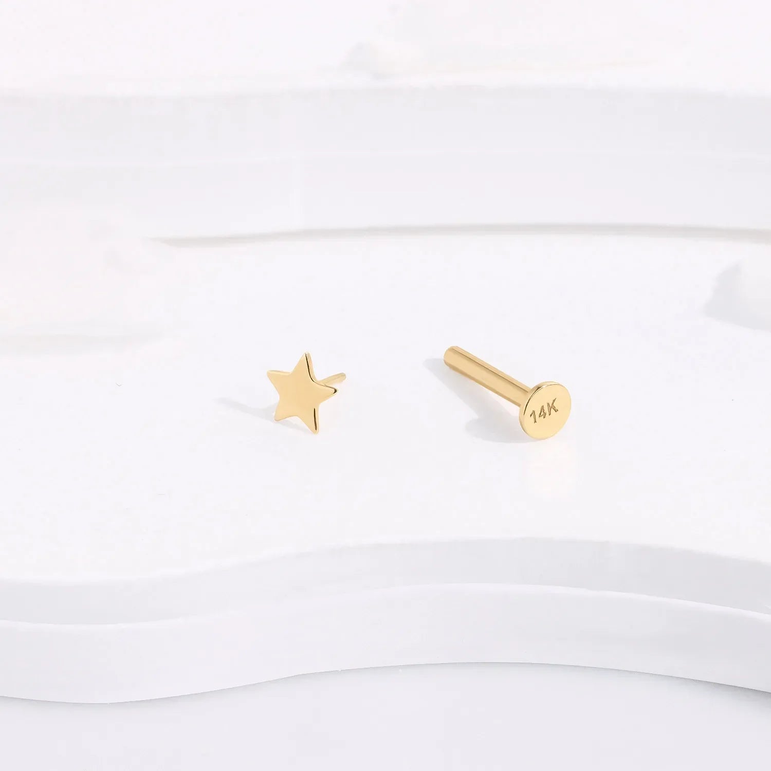Gold star ear stud star nose stud 14k gold star stud earrings threadless solid gold