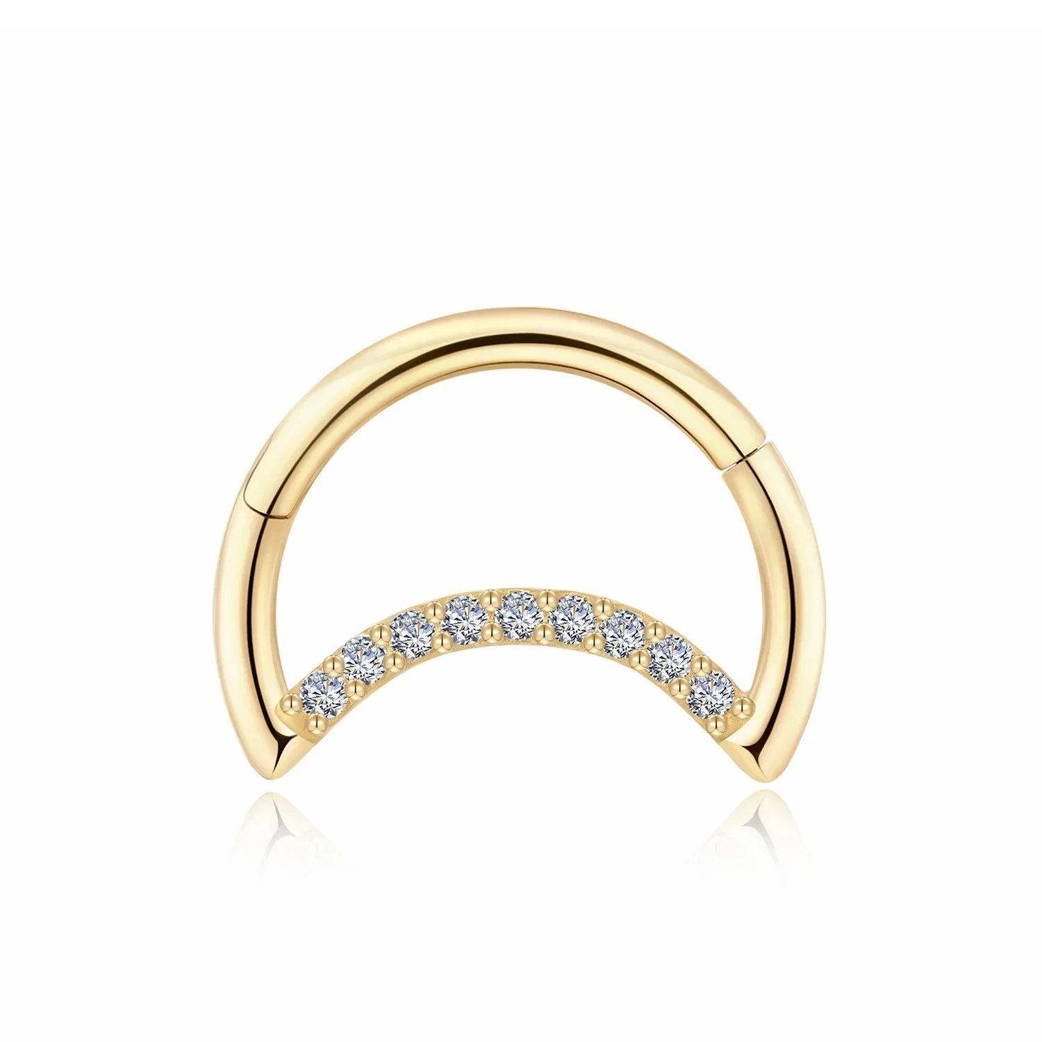 Half moon hoop earring with clear CZ stones 14K gold nose hoop half moon piercing