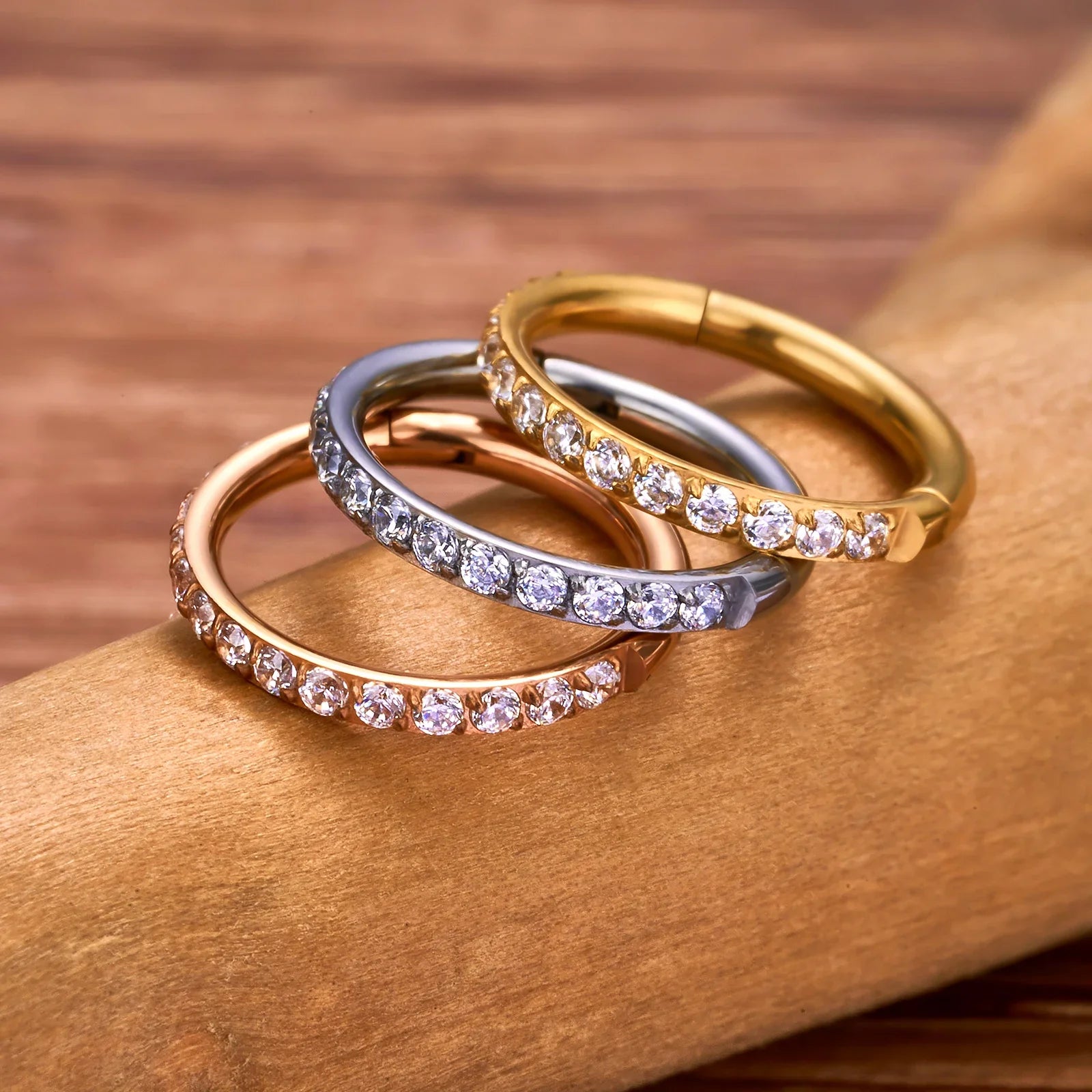 Hoop piercing with CZ for nose piercings helix piercings conch piercings made of titanium