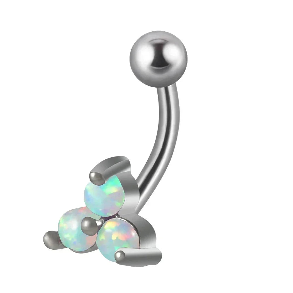 Jestrum lip piercing with 3 dots white blue opal clear CZ stone titanium curved barbell